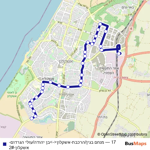 Bus 17 - מנחם בגין/הרכבת-אשקלון<->בן יהודה/עולי הגרדום-אשקלון-2# in Gaza: Stops & Timetable