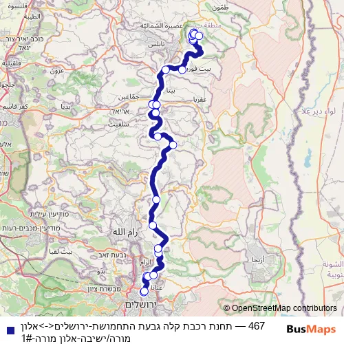 Bus 467 - תחנת רכבת קלה גבעת התחמושת-ירושלים<->אלון מורה/ישיבה-אלון מורה-1# in Nablus: Stops & Timetable