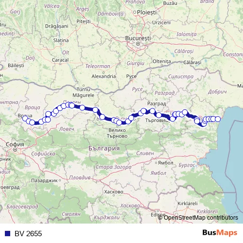 The first stop of the BV 2655 rail route is Враца and the last stop is Варна. BV 2655 is operational during всеки ден.