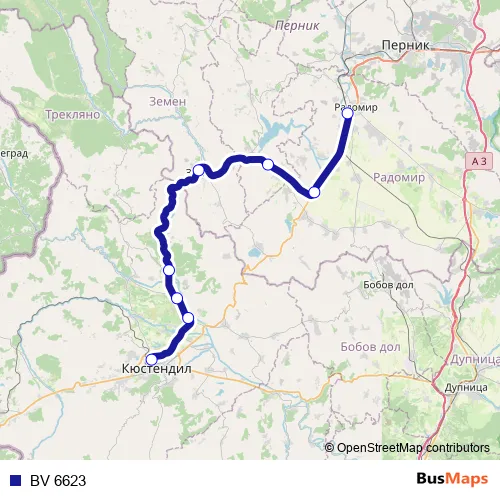 The first stop of the BV 6623 rail route is Радомир and the last stop is Кюстендил. BV 6623 is operational during всеки ден.
