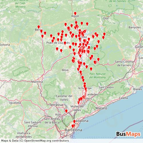 25 Osona Bus, Sa operates in the following cities: Vic, Montesquiu, Prats de Llucanes, Tona, Manlleu, Santa Cecilia de Voltrega, Oris, Les Franqueses del Valles, Llica de Vall, Sant Boi de Llucanes, Tavertet, Torello, Vilanova de Sau, Barcelona, Orista, Seva.
