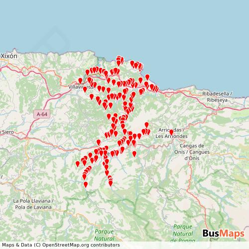 Autocares Costa Verde Sa operates in the following cities: Pilona, Colunga, Villaviciosa.
