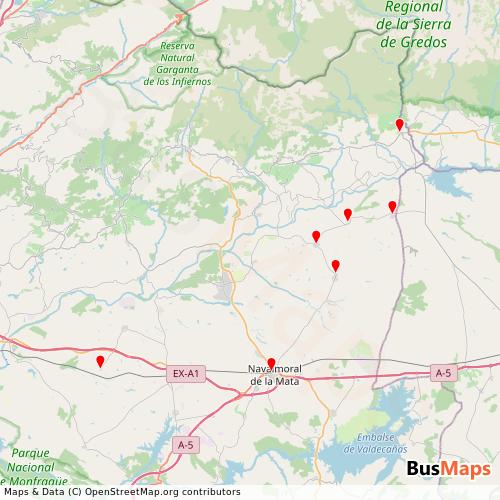 Autocares Sirga operates in the following cities: Tietar, Toril.