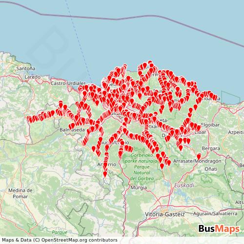 Bizkaibus operates in the following cities: Bilbao, Galdakao, San Julian de Muskiz, Berango, Barakaldo, Derio, Mungia, Balmaseda, Portugalete, Amorebieta, Elexalde, Ermua, Plentzia, Sestao, Abadino, Alonsotegi, Arrigorriaga, Erandio, Gatika, Gordexola, Ibarrangelu, Sondika, Areatza, Aulesti, Basauri, Bermeo, Berriatua, Durango, Errigoiti, Gernika-Lumo, Kortezubi, Markina-Xemein, Santurtzi, Sopela.