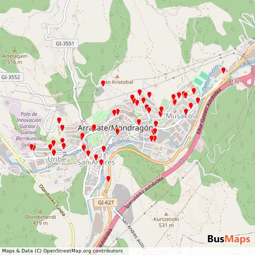 Lurraldebus Urbano De Arrasate operates in the following cities: Arrasate / Mondragon.