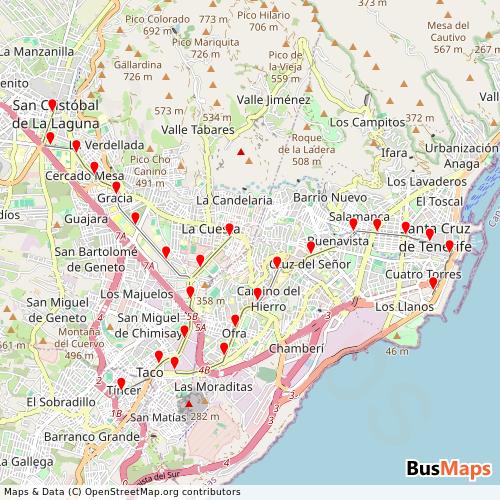 Metropolitano de Tenerife operates in the following cities: Santa Cruz de Tenerife.