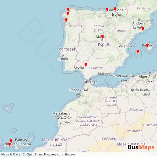 Royal Air Maroc operates in the following cities: Madrid, Fuenterrabia, Palma, Santa Cruz de Tenerife, Sondika, Culleredo, Sevilla.