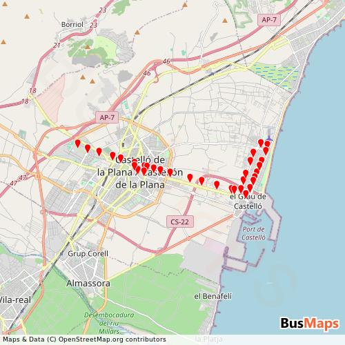 Tram Castelló de la Plana operates in the following cities: Castello de la Plana.