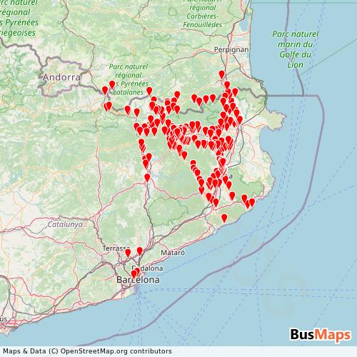 Transports Elèctrics Interurbans, SA -Teisa- operates in the following cities: Olot, Banyoles, Camprodon, Figueres, Girona, Salt, Sarria de Ter, Barcelona, Macanet de Cabrenys, Ripoll, Sant Feliu de Pallerols, la Cellera de Ter, Argelaguer, Avinyonet de Puigventos, Montesquiu, Planoles, Sant Joan de les Abadesses, Vilademuls, Vilafant, Vilobi d'Onyar.