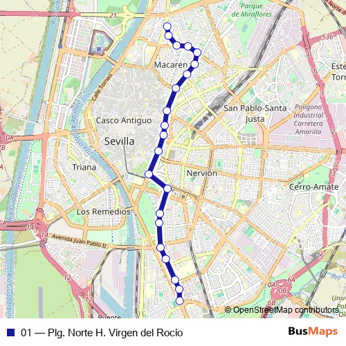 Click here to view the nearest 01 - Plg. Norte H. Virgen del Rocio bus stop.