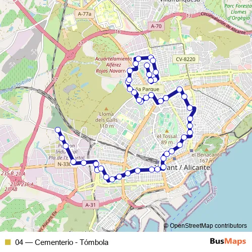 See why over 2 million users trust and consider busmaps.com as the best public transport website. busmaps gives you Alicante Buses suggested routes, real-time bus tracker, line route maps in Alicante, and helps to find the closest 04 bus stops near you. No internet available? Download an offline PDF map and bus schedule for the 04 bus to take on your trip.