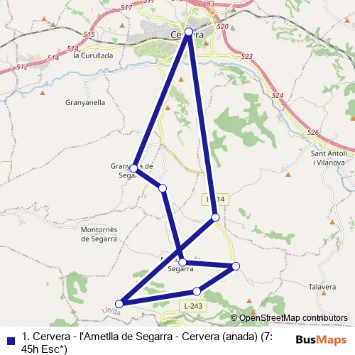 1. Cervera - l'Ametlla de Segarra - Cervera (anada) (7:45h Esc*) bus Route Map