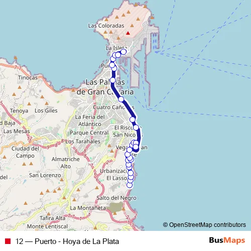 Bus 12 - Puerto - Hoya de La Plata in Las Palmas de Gran Canaria: Stops & Timetable