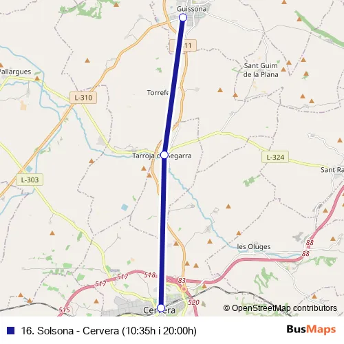 Bus 16. Solsona - Cervera (10:35h i 20:00h) Schedule in Cervera