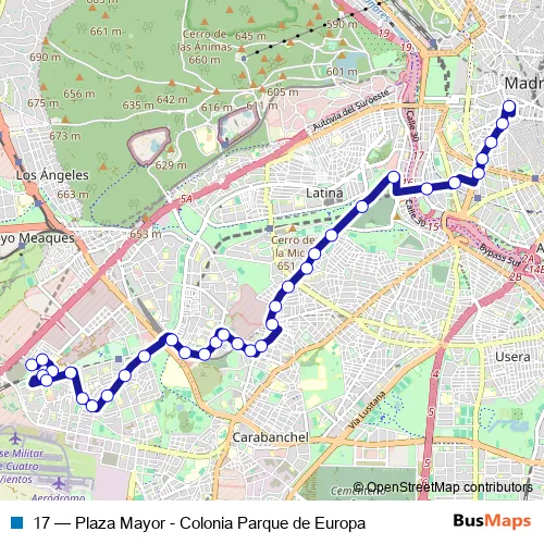 See why over 2 million users trust and consider busmaps.com as the best public transport website. busmaps gives you Madrid Buses suggested routes, real-time bus tracker, line route maps in Madrid, and helps to find the closest 17 bus stops near you. No internet available? Download an offline PDF map and bus schedule for the 17 bus to take on your trip.