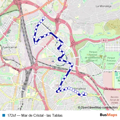 See why over 2 million users trust and consider busmaps.com as the best public transport website. busmaps gives you Madrid Buses suggested routes, real-time bus tracker, line route maps in Madrid, and helps to find the closest 172sf bus stops near you. No internet available? Download an offline PDF map and bus schedule for the 172sf bus to take on your trip.