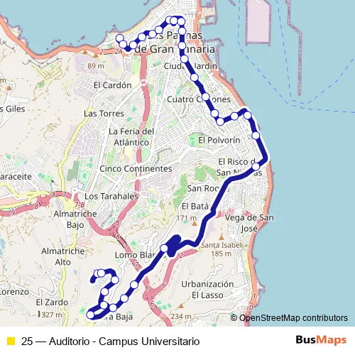 25 (Auditorio - Campus Universitario) Bus in Las Palmas de Gran Canaria