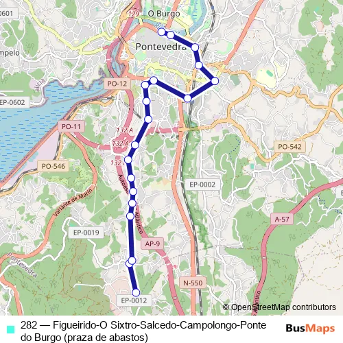 Bus 282 - Figueirido-O Sixtro-Salcedo-Campolongo-Ponte do Burgo (praza de abastos): Full Schedule in Pontevedra