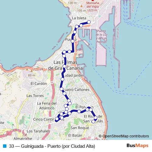 Bus 33 - Guiniguada - Puerto (por Ciudad Alta) in Las Palmas de Gran Canaria: Stops & Timetable