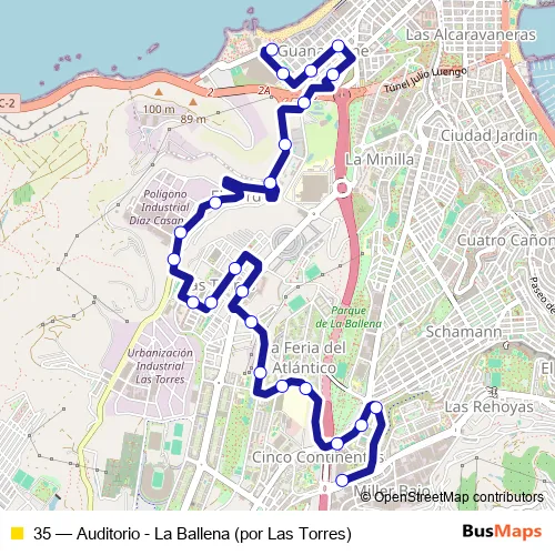 See why over 2 million users trust and consider busmaps.com as the best public transport website. busmaps gives you Las Palmas de Gran Canaria Buses suggested routes, real-time bus tracker, line route maps in Las Palmas de Gran Canaria, and helps to find the closest 35 bus stops near you. No internet available? Download an offline PDF map and bus schedule for the 35 bus to take on your trip.