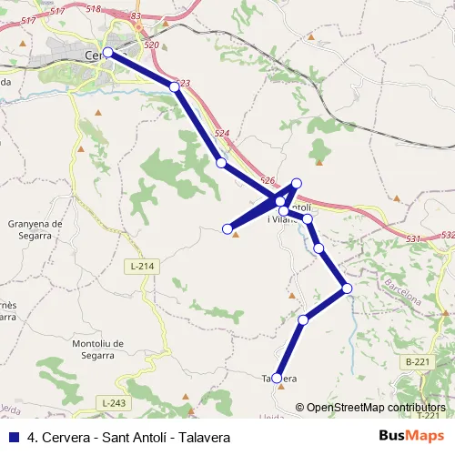 4. Cervera - Sant Antolí - Talavera bus Route Map