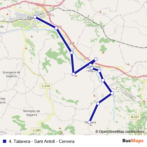 4. Talavera - Sant Antolí - Cervera bus Route Map