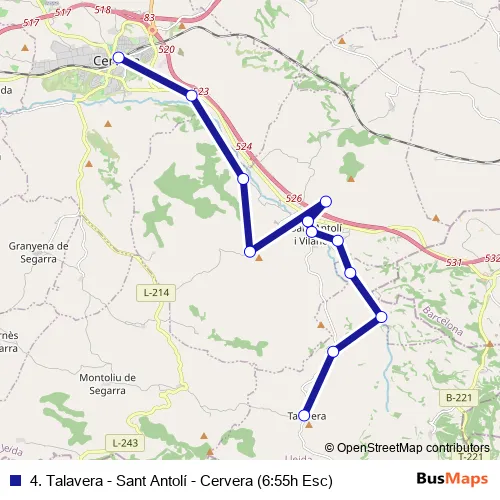 4. Talavera - Sant Antolí - Cervera (6:55h Esc) bus Route Map