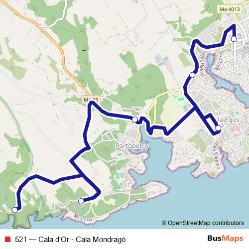 Av. Calonge 1 (57049). 521 (Cala d'Or - Cala Mondragó) is operational during cada dia.