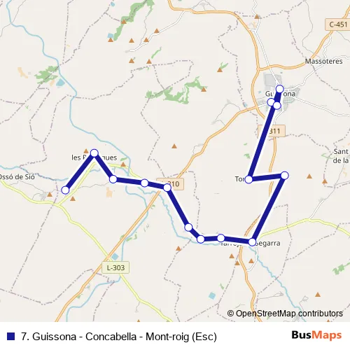 7. Guissona - Concabella - Mont-roig (Esc) bus Route Map