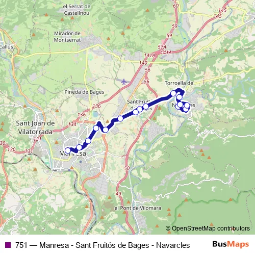 Click here to view the nearest 751 - Manresa - Sant Fruitós de Bages - Navarcles bus stop.