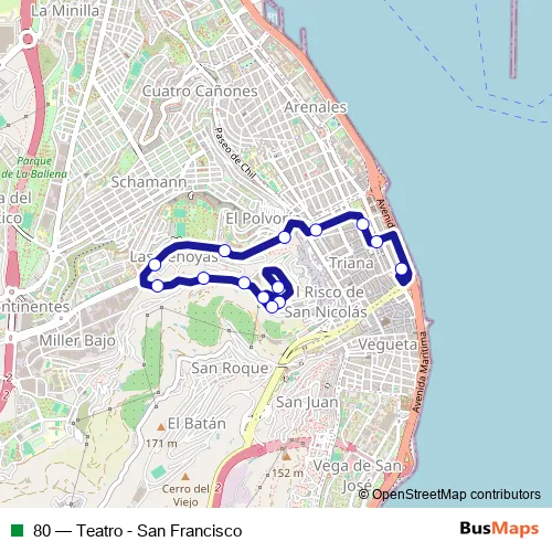 80 (Teatro - San Francisco) Bus in Las Palmas de Gran Canaria