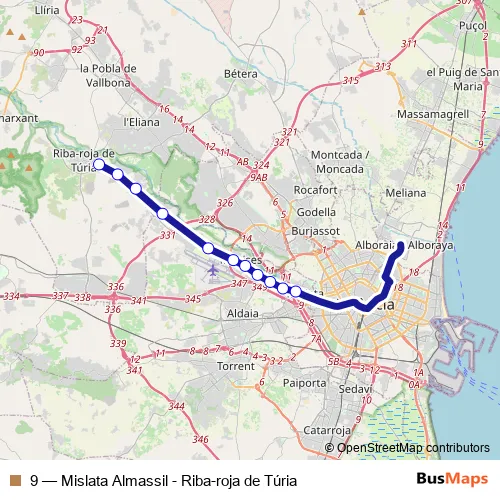 Schedules and stops for this route are published in GTFS: metro-de-valencia-esp