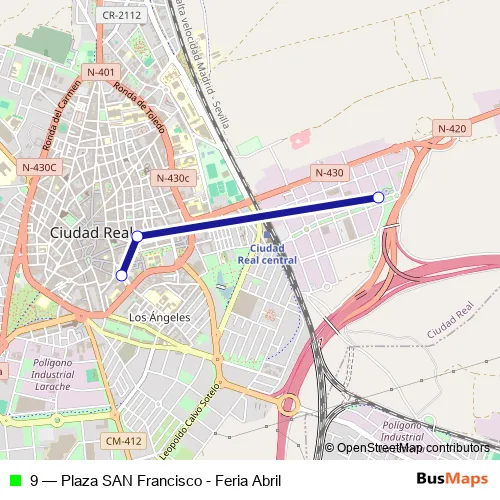See why over 2 million users trust and consider busmaps.com as the best public transport website. busmaps gives you Ciudad Real Buses suggested routes, real-time bus tracker, line route maps in Ciudad Real, and helps to find the closest 9 bus stops near you. No internet available? Download an offline PDF map and bus schedule for the 9 bus to take on your trip.