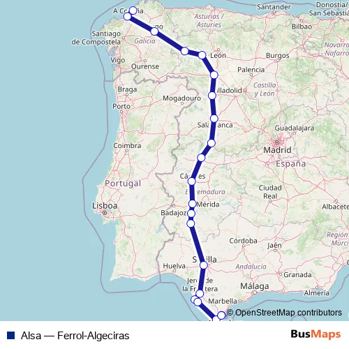 Click here to view the nearest Alsa - Ferrol-Algeciras bus stop.