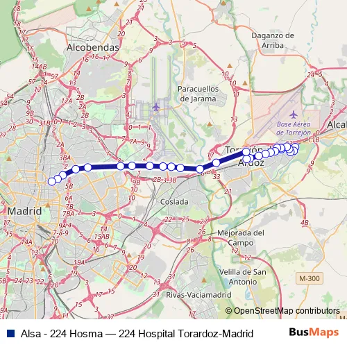 See why over 2 million users trust and consider busmaps.com as the best public transport website. busmaps gives you Torrejon de Ardoz Buses suggested routes, real-time bus tracker, line route maps in Torrejon de Ardoz, and helps to find the closest Alsa - 224 Hosma bus stops near you. No internet available? Download an offline PDF map and bus schedule for the Alsa - 224 Hosma bus to take on your trip.
