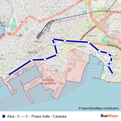 Bus Alsa - C - C - Praza Vella - Caranza: Full Schedule in Ferrol