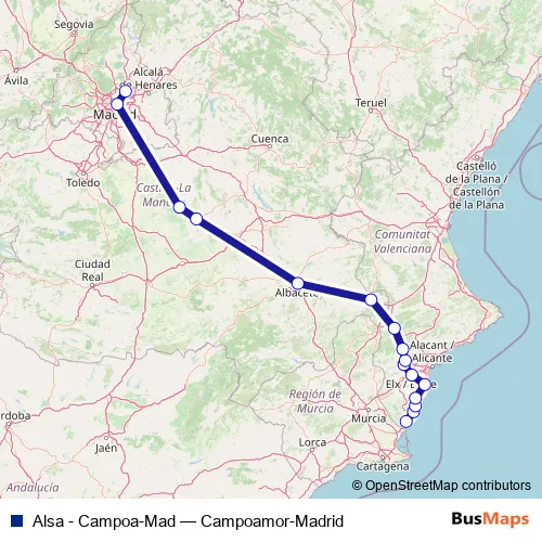 Additional information: Alsa - Campoa-Mad has 16 stops and the total trip duration