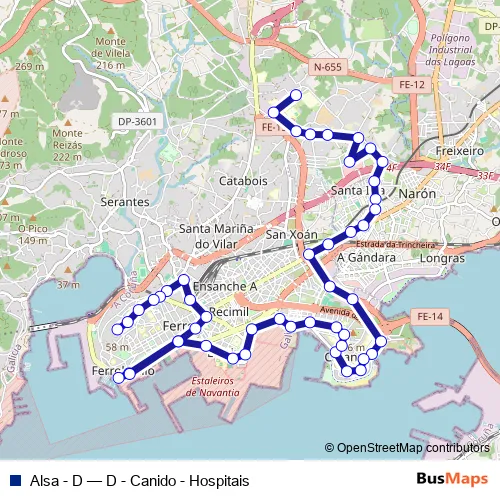 Bus Alsa - D - D - Canido - Hospitais Schedule in Ferrol
