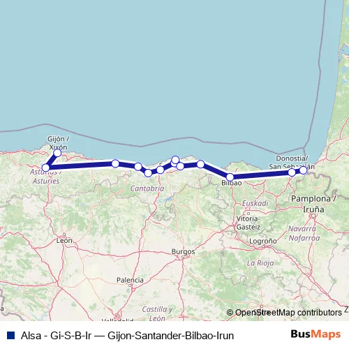 Click here to view the nearest Alsa - Gi-S-B-Ir - Gijon-Santander-Bilbao-Irun bus stop.