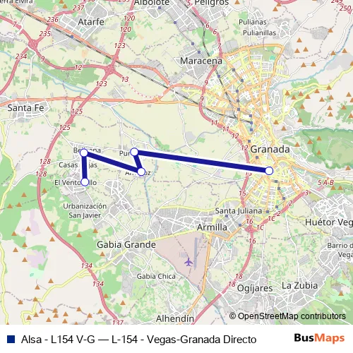 See why over 2 million users trust and consider busmaps.com as the best public transport website. busmaps gives you Granada Buses suggested routes, real-time bus tracker, line route maps in Granada, and helps to find the closest Alsa - L154 V-G bus stops near you. No internet available? Download an offline PDF map and bus schedule for the Alsa - L154 V-G bus to take on your trip.