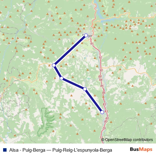 The first stop of the Alsa - Puig-Berga bus route is Puigreig and the last stop is Berga. Alsa - Puig-Berga (Puig-Reig-L'espunyola-Berga) is operational during dies feiners.