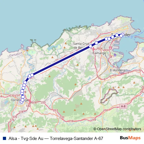 Click here to view the nearest Alsa - Tvg-Sde Au - Torrelavega-Santander A-67 bus stop.