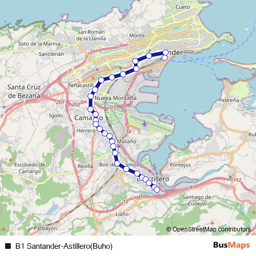 B1 Santander-Astillero(Buho) bus Route Map
