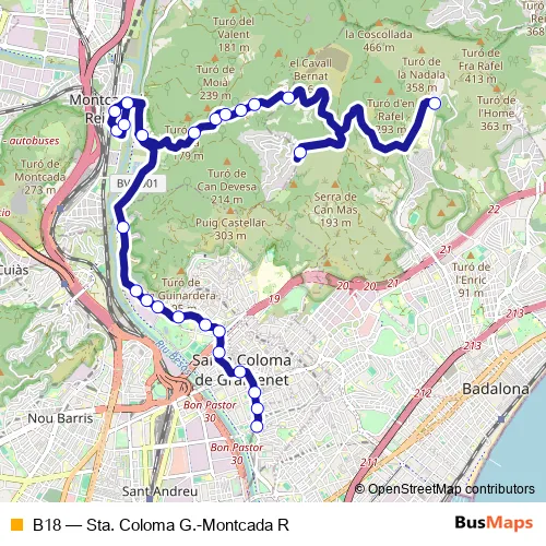 See why over 2 million users trust and consider busmaps.com as the best public transport website. busmaps gives you Barcelona Buses suggested routes, real-time bus tracker, line route maps in Barcelona, and helps to find the closest B18 bus stops near you. No internet available? Download an offline PDF map and bus schedule for the B18 bus to take on your trip.