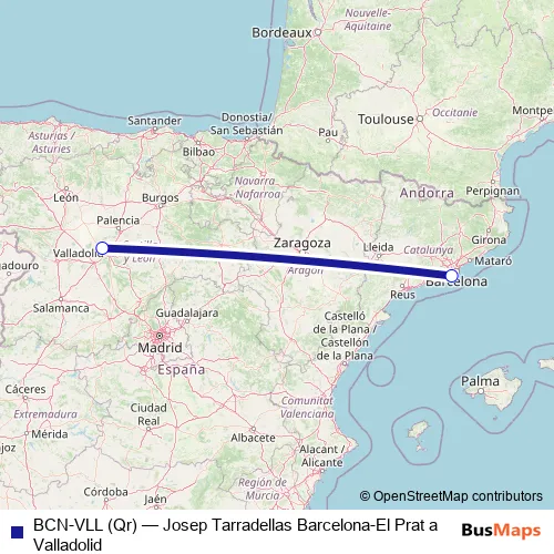 Services on the BCN-VLL (Qr) - Josep Tarradellas Barcelona-El Prat a Valladolid air stop at 18:20 on dilluns, dimarts, dimecres, dijous, divendres, dissabte, diumenge.