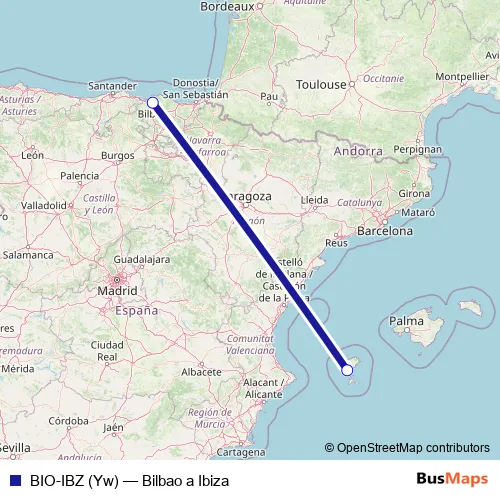 Services on the BIO-IBZ (Yw) - Bilbao a Ibiza air stop at 11:55 on dimarts.