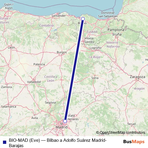 Click here to view the nearest BIO-MAD (Eve) - Bilbao a Adolfo Suárez Madrid-Barajas air stop.