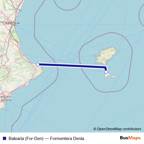See why over 2 million users trust and consider busmaps.com as the best public transport website. busmaps gives you Denia Ferries suggested routes, real-time bus tracker, line route maps in Denia, and helps to find the closest Balearia (For-Den) ferry stops near you. No internet available? Download an offline PDF map and bus schedule for the Balearia (For-Den) ferry to take on your trip.
