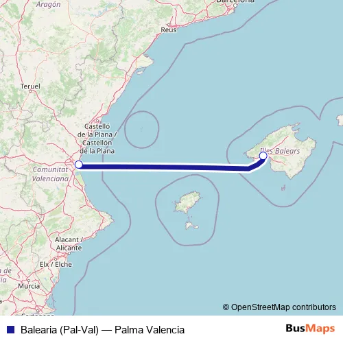 See why over 2 million users trust and consider busmaps.com as the best public transport website. busmaps gives you Palma Ferries suggested routes, real-time bus tracker, line route maps in Palma, and helps to find the closest Balearia (Pal-Val) ferry stops near you. No internet available? Download an offline PDF map and bus schedule for the Balearia (Pal-Val) ferry to take on your trip.