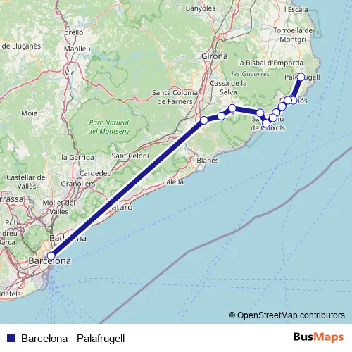 See why over 2 million users trust and consider busmaps.com as the best public transport website. busmaps gives you Palamos Buses suggested routes, real-time bus tracker, line route maps in Palamos, and helps to find the closest Barcelona - Palafrugell bus stops near you. No internet available? Download an offline PDF map and bus schedule for the Barcelona - Palafrugell bus to take on your trip.